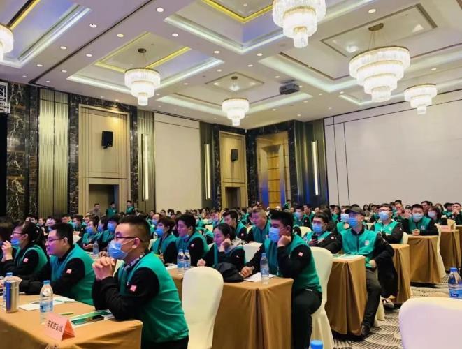 现场几百锅圈食汇人统一着装, 座无虚席。会议开始前, 伙伴们用一首节奏欢快明朗且信念感极强的歌曲配合简单舞蹈动作开场, 向总部领导展现河北人饱满的精神面貌。兵来将挡, 水来土掩, 随着冲锋号吹响, 合作商排成方阵齐心协力迎接新机遇。